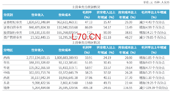 从区域分布看,西南证券的收入结构呈现出明显的地域集中特征。2025年,公司在西南地区实现营业收入27.37亿元,同比增长24.19%,占总营收比重高达85.34%。华东、华北、中南地区分别贡献1.88亿元、1.35亿元和1.03亿元,合计占比不足15%。西北、东北地区收入合计不足4000万元,占比仅1.2%。