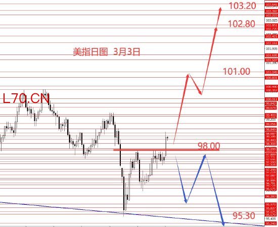 3月3日,美指上周区间震荡,周图收小阴十字星。从图形来看,最终向上破位,也符合大框架思路。上周一文字策略错误扫损离场,周四改低多博上破思路正确。目前已成功站稳98.10上方,所以后市按上破框架延用思路执行,中线按大反弹对待现货配资炒股平台,目标102.80和103.20.若再跌回至98.00下方后,再改框架为大的低位震荡格局。故今日操作策略:98.30/98.20区域做多,止损97.90,目标看向101和102.80和103.20区域。控制仓量,严格止损。