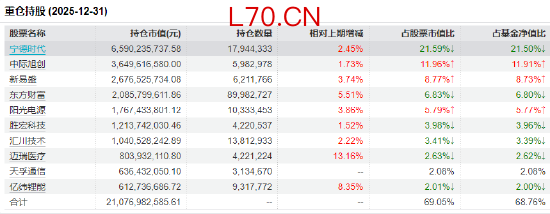 最新定期报告显示,创业板50ETF华安(159949)十大重仓股全线收红。包括宁德时代、中际旭创、新易盛、东方财富、阳光电源、胜宏科技、汇川技术、迈瑞医疗、天孚通信、亿纬锂能,持仓占比如下。