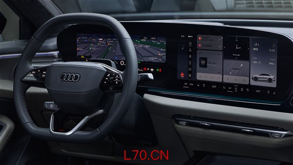 车内延续奥迪家族最新的内饰风格,搭载11.9英寸虚拟座舱+14.5英寸MMI全景显示屏+可选10.9英寸带隐身模式的副驾屏,采用了曲面OLED技术,另外还提供了13.1英寸W-HUD,构成沉浸式智能交互座舱。
